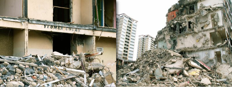 It comprised 196 council homes in five blocks - two 15-storey tower blocks (Yeoman Court & Marchant Court) and three lower level maisonette blocks.